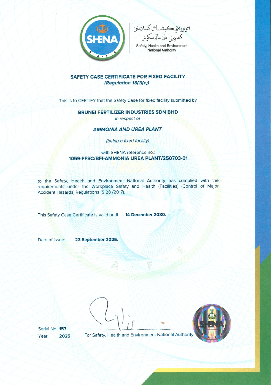Established on 28th October 2013 and owned by the Brunei Government, BFI is the country's premier Ammonia & Urea Plant in the Belait District.
